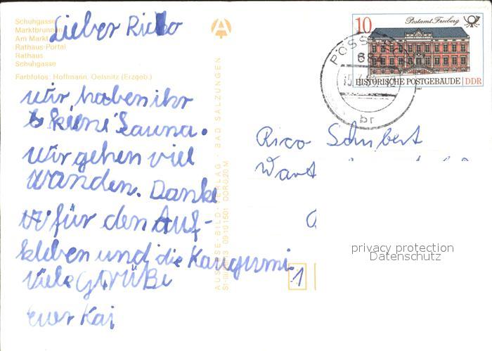 72276664 alte Postkarte Poessneck Schuhgasse Marktbrunnen Markt Rathaus postalisch gelaufen Erhaltung siehe scans KatCode: 11110016075085