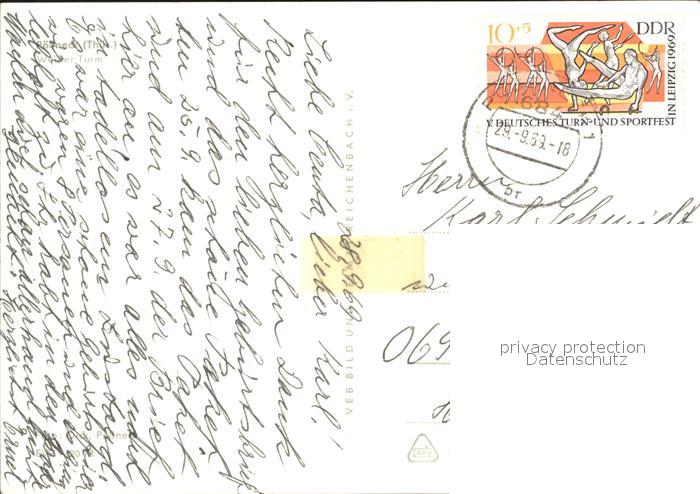 72135206 alte Postkarte Poessneck Weisser Turm postalisch gelaufen Erhaltung siehe scans KatCode: 11110016075085