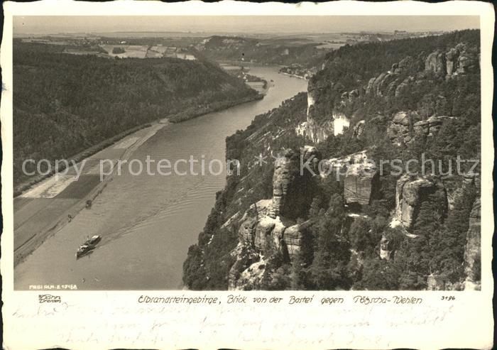 71942020 alte Postkarte Poetzscha Wehlen Panorama Blick von der Bastei Elbsandsteingebirge Elbe postalisch gelaufen Erhaltung siehe scans KatCode: 11110014287380