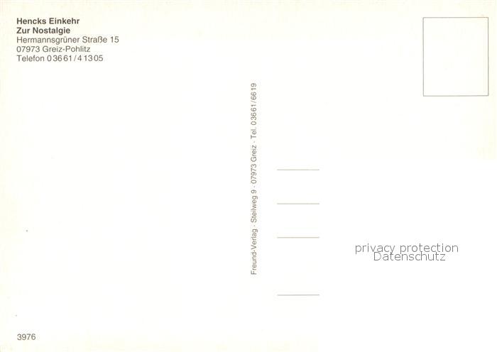 73659323 Pohlitz Greiz Hencks Einkehr Zur Nostalgie postalisch nicht gelaufen Erhaltung siehe scans [LiesaD40] KatCode: 11110016076022