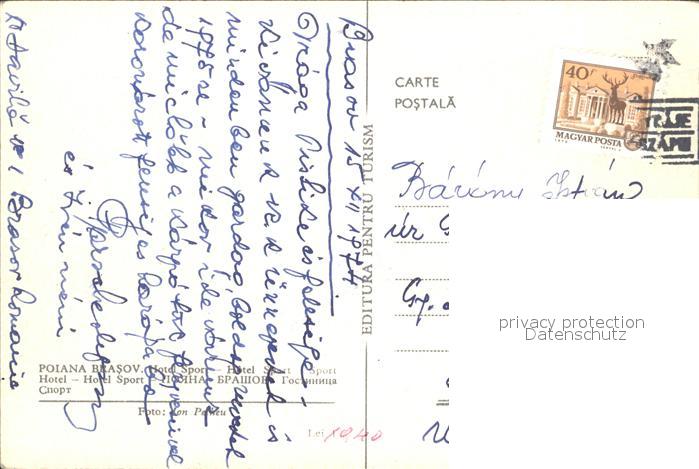 old postcard Poiana Brasov Hotel Sport postalisch gelaufen Erhaltung siehe scans