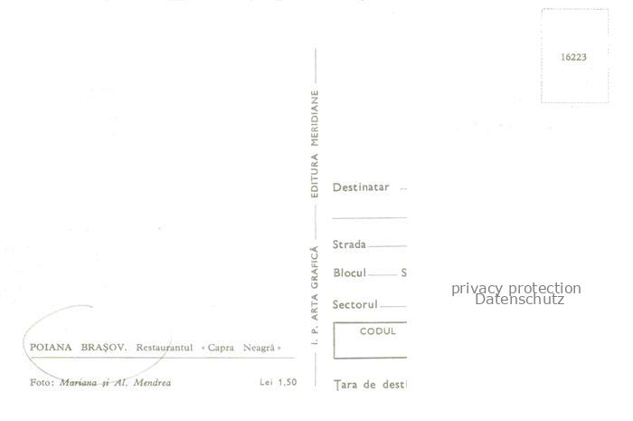 74156653 Poiana Brasov Schulerau Siebenbuergen RO Restaurant-Capra-Neagra Restaurantgebaeude Steinbogen Pappeln Gebirge Wald Bergresort postalisch nicht gelaufen Erhaltung siehe scans [Karloger] KatCode: 11430
