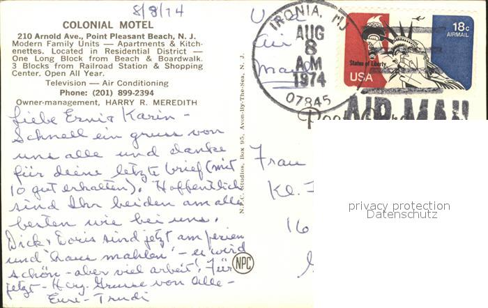 71955844 old postcard Point Pleasant Beach Concil Motel postalisch gelaufen Erhaltung siehe scans KatCode: 14140320000000