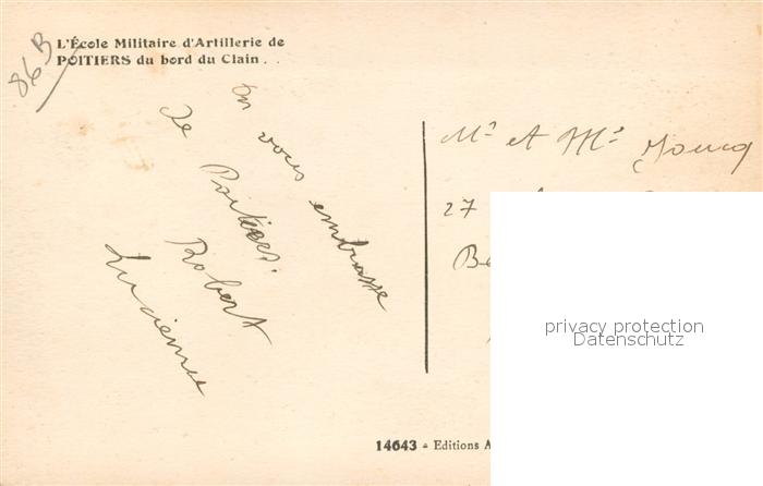 13746837 Poitiers 86 Ecole Militaire d Artillerie Bord du Clain postalisch gelaufen Erhaltung siehe scans [FriedD77] carte postale Frie Katcode 11170086386194