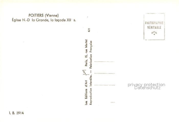 13310319 Poitiers 86 Eglise Notre Dame de la Grande Facade XII siecle postalisch nicht gelaufen Erhaltung siehe scans [FriedD77] KatCode: 11170086386194