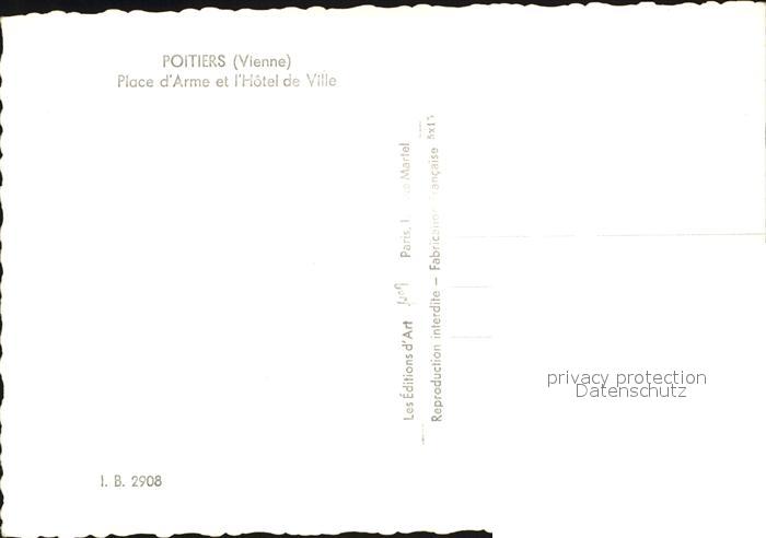 12430451 Poitiers 86 Place d`Arme et Hotel de Ville postalisch nicht gelaufen Erhaltung siehe scans KatCode: 11170086386194