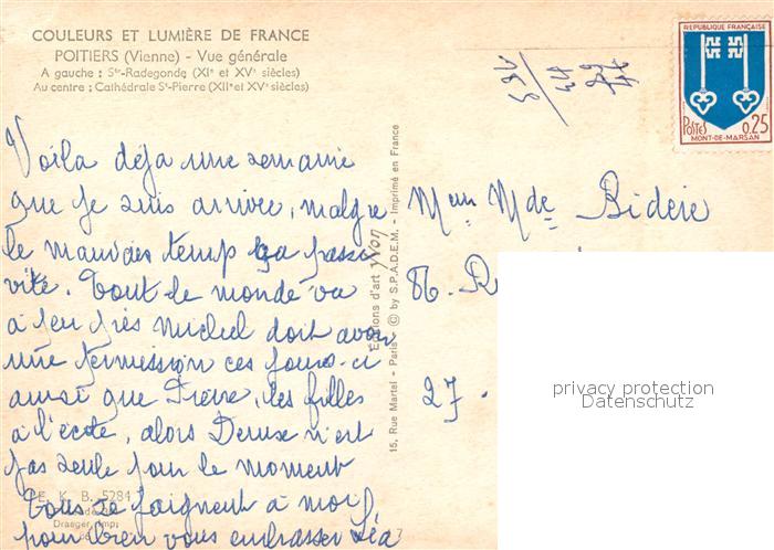 13583180 Poitiers 86 Vue generale St Radegonde Cathedrale St Pierre postalisch gelaufen Erhaltung siehe scans [WerneD78] carte postale Wern Katcode 11170086386194