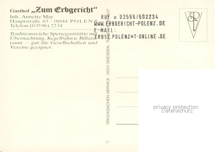 73659345 Polenz Neustadt Gasthof Zum Erbgericht Restaurant Fremdenzimmer postalisch nicht gelaufen Erhaltung siehe scans [FriedD77] KatCode: 11110014287270