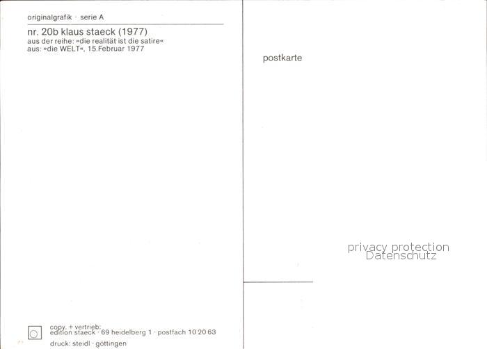 Politik Die Welt Reihe Die Realitaet ist die Satire Klaus Staeck aerztestreik postalisch nicht gelaufen Erhaltung siehe scans [PaolaD17 kt100box]