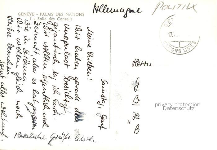 alte Postkarte Politik Geneve Palais des Nations Salle des Conseils postalisch gelaufen Erhaltung siehe scans [PaolaD17]