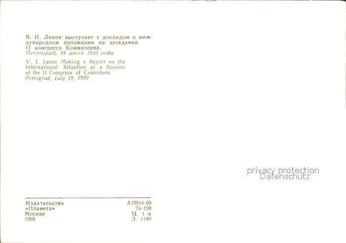 Politik Geschichte Lenin making a Report International Situation Session II. Congress of Comintern 1920 postalisch nicht gelaufen Erhaltung siehe scans