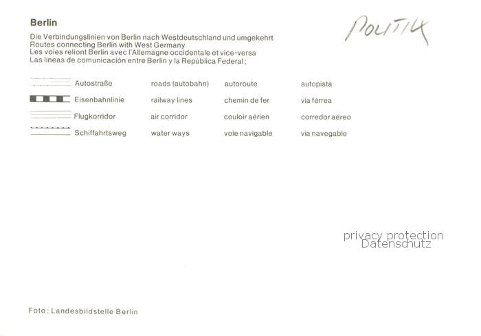 73900498 Politik Politics Politique Berlin Verbindungslinien postalisch nicht gelaufen Erhaltung siehe scans [IrynaD87] KatCode: 22420000000300