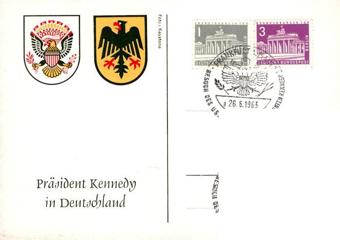 73894604 alte Postkarte Politik Politics Politique Praesident Kennedy in Deutschland postalisch gelaufen Erhaltung siehe scans [IrynaD87] KatCode: 22420000000300