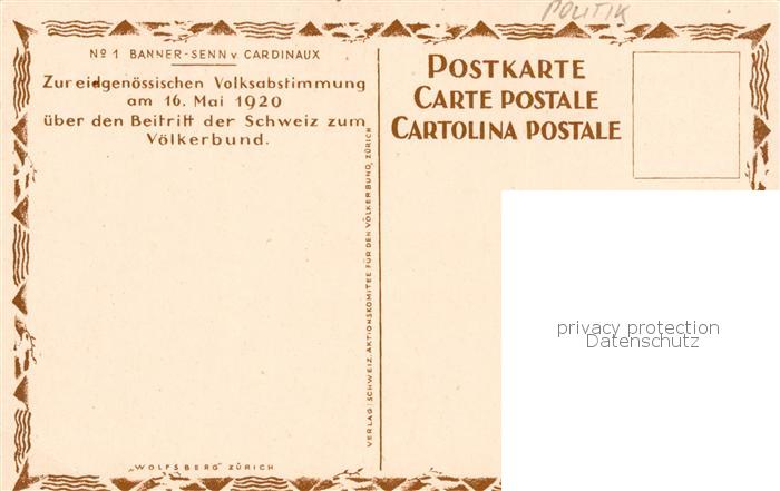 73855914 Politik Politics Politique Schweizer Volkerbund postalisch nicht gelaufen Erhaltung siehe scans [IrynaD87] KatCode: 22420000000300