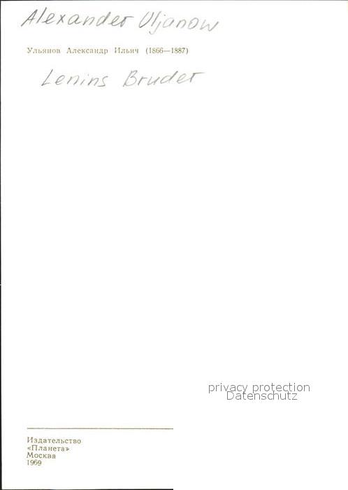Politik W. I. Lenin Bruder Alexander Iljitsch Uljanow postalisch nicht gelaufen Erhaltung siehe scans