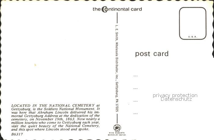 Politiker Abraham Lincoln National Cemetery Gettysburg Soldiers National Monument postalisch nicht gelaufen Erhaltung siehe scans