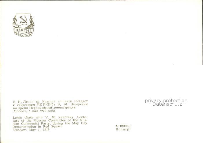 Politiker Lenin chats with V. M. Zagorsky May Day Demonstration Red Square 1919 postalisch nicht gelaufen Erhaltung siehe scans