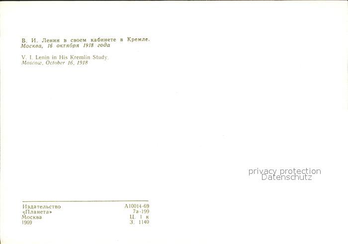 Politiker V. I. Lenin i His Kremlin Study 1918 postalisch nicht gelaufen Erhaltung siehe scans