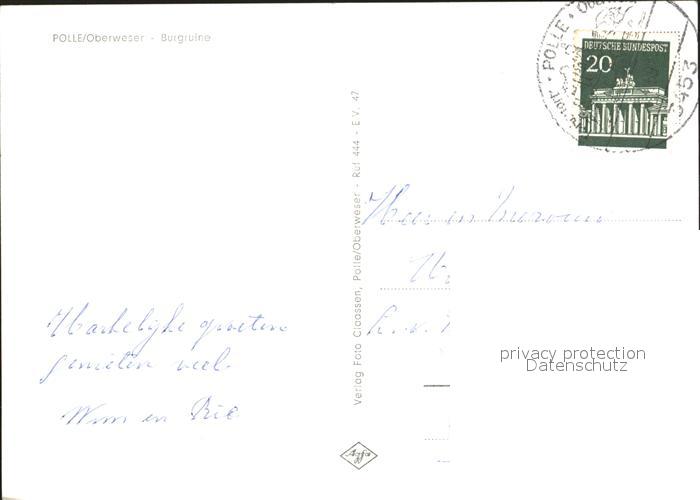 72063941 alte Postkarte Polle Burgruine Park postalisch gelaufen Erhaltung siehe scans KatCode: 11110003255033