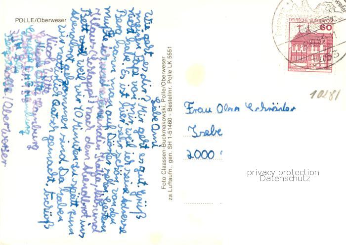 73762214 alte Postkarte Polle Fliegeraufnahme postalisch gelaufen Erhaltung siehe scans [FriedD77] KatCode: 11110003255033