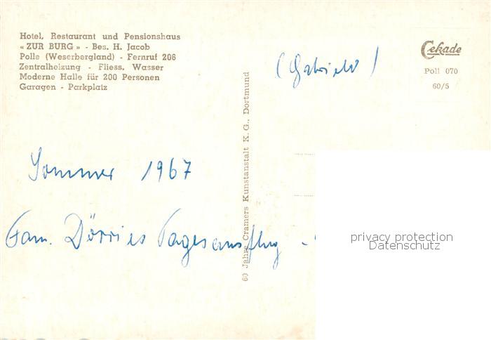 73762199 Polle Hotel zur Burg Restaurant Pension postalisch nicht gelaufen Erhaltung siehe scans [FriedD77] KatCode: 11110003255033