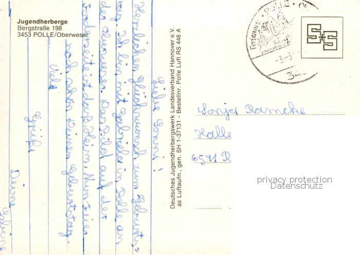 73834594 alte Postkarte Polle Jugendherberge postalisch gelaufen Fliegeraufnahme Erhaltung siehe scans [FriedD77] KatCode: 11110003255033