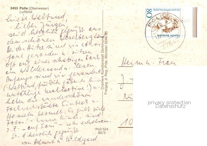 73005286 alte Postkarte Polle Oberweser Fliegeraufnahme postalisch gelaufen Erhaltung siehe scans [WerneD78] KatCode: 11110003255033