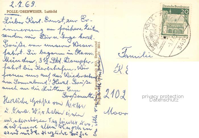 73764357 alte Postkarte Polle Oberweser Fliegeraufnahme postalisch gelaufen Erhaltung siehe scans [FriedD77] KatCode: 11110003255033