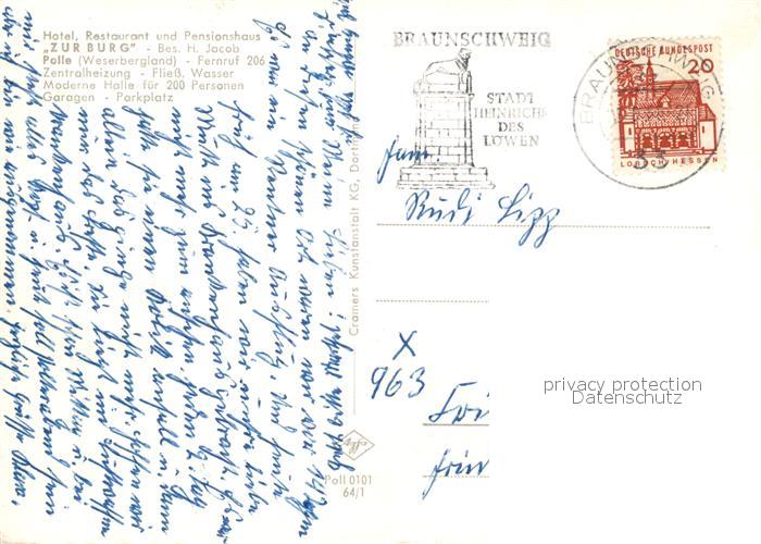 73132353 alte Postkarte Polle Oberweser Hotel Zur Burg Turm Fliegeraufnahme postalisch gelaufen Erhaltung siehe scans [FriedD77] KatCode: 11110003255033