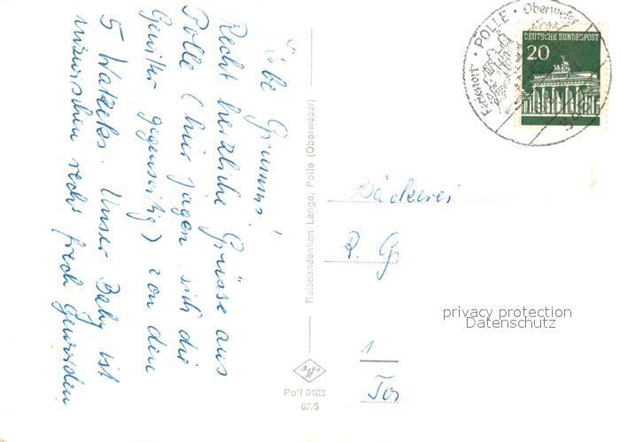 73164248 alte Postkarte Polle Oberweser Landschaftspanorama Wesertal Teilansicht Turm postalisch gelaufen Erhaltung siehe scans [FriedD77] KatCode: 11110003255033