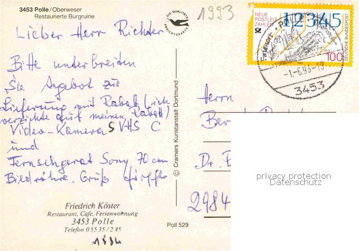 72897974 alte Postkarte Polle Oberweser Restaurierte Burgruine postalisch gelaufen Erhaltung siehe scans [FriedD77] KatCode: 11110003255033