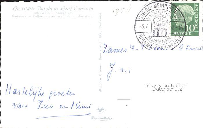 72028656 alte Postkarte Polle Weserblick Gaststaette Burghaus Graf Everstein Fliegeraufnahme postalisch gelaufen Erhaltung siehe scans KatCode: 11110003255033