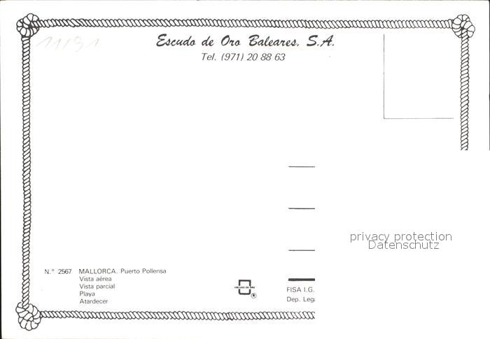 Pollensa Fliegeraufnahme Hafen postalisch nicht gelaufen Erhaltung siehe scans