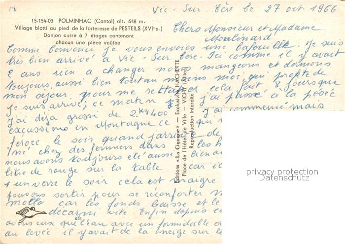 13580438 Polminhac Village blotti au pied de la forteresse de Pesteils Donjon carre a 7 etages contenant chacun une piece voutee postalisch nicht gelaufen Erhaltung siehe scans [WerneD78] KatCode: 11170015115154
