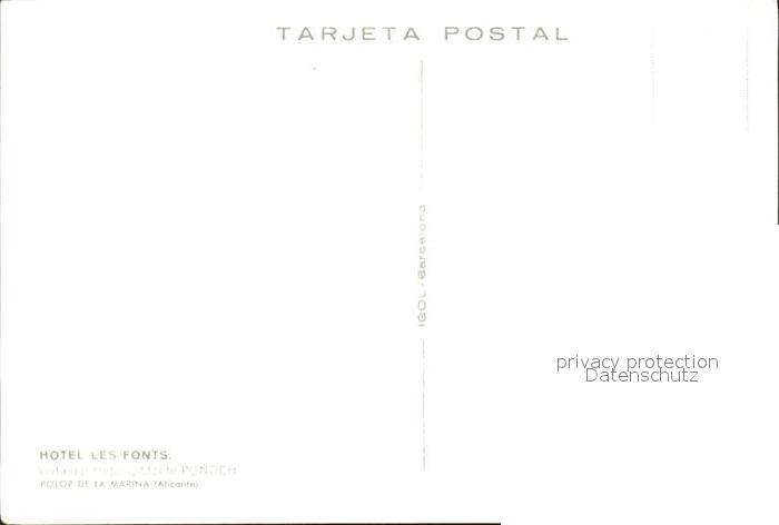 Polop Hotel les Fonts Polop de la Marina Alicante postalisch nicht gelaufen Erhaltung siehe scans