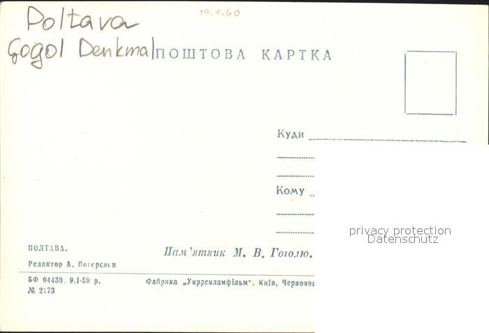 Poltava Gogol Denkmal postalisch nicht gelaufen Erhaltung siehe scans