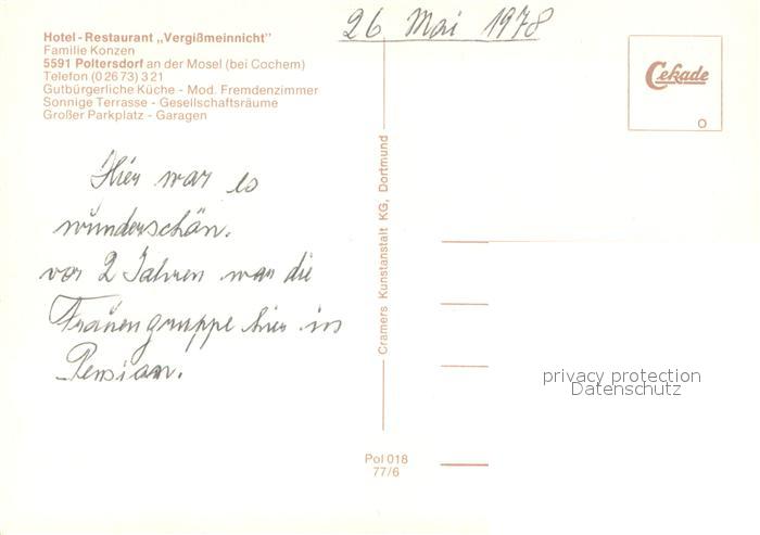 73646005 Poltersdorf Hotel Restaurant Vergissmeinnicht an der Mosel Landschaftspanorama postalisch nicht gelaufen Erhaltung siehe scans [FriedD77] KatCode: 11110007135025