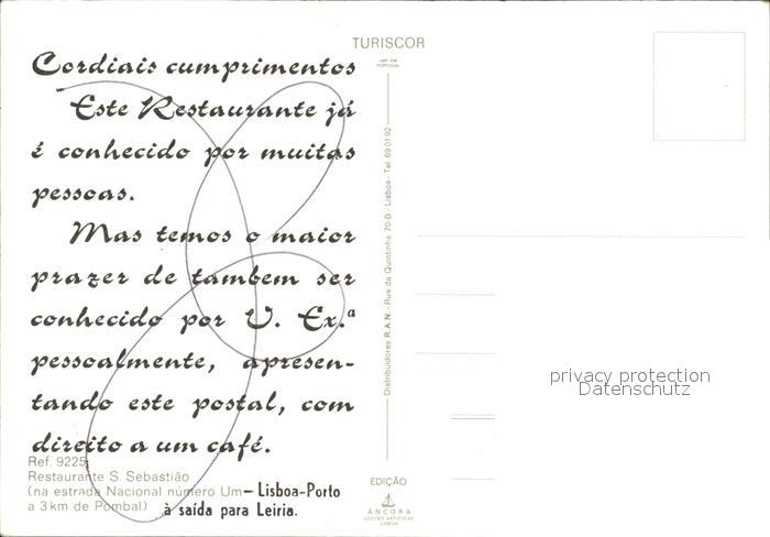 Pombal Restaurante S Sebastiao postalisch nicht gelaufen Erhaltung siehe scans