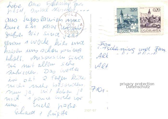 74137530 old postcard Pomera Pomer Medulin Istria Croatia Fischernetz Hummer Hotel Strand postalisch gelaufen Erhaltung siehe scans [WerneD78] KatCode: 11260