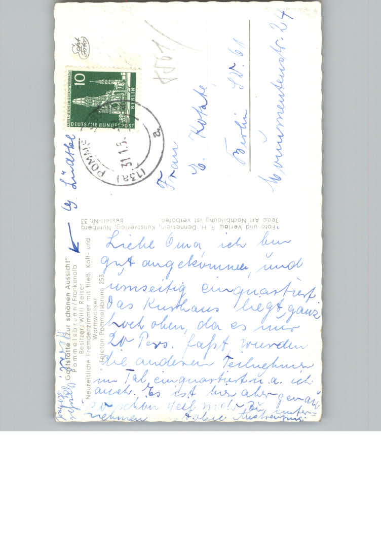 31169641 Pommelsbrunn Gaststaette Zur schoenen Aussicht postalisch nicht gelaufen KatCode: 11110009574147