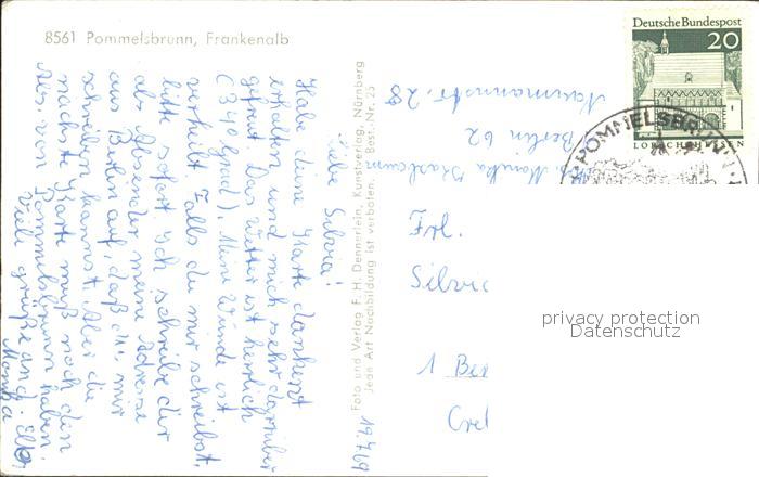 72069928 alte Postkarte Pommelsbrunn Ortsansicht mit Kirche Frankenalb postalisch gelaufen Erhaltung siehe scans KatCode: 11110009574147