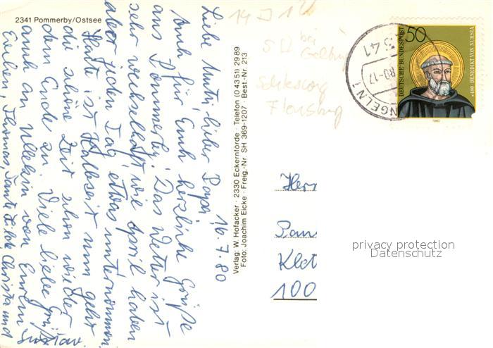 73667130 alte Postkarte Pommerby Fliegeraufnahme postalisch gelaufen Erhaltung siehe scans [WerneD78] KatCode: 11110001059152