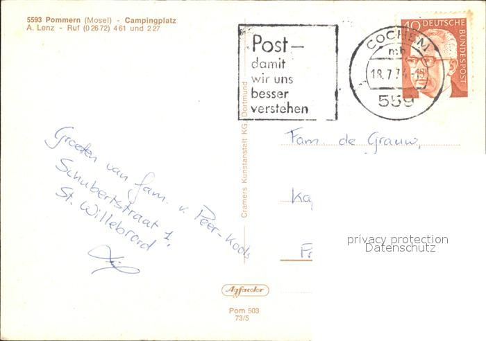 72172933 alte Postkarte Pommern Mosel Campingplatz postalisch gelaufen Erhaltung siehe scans KatCode: 11110007135072