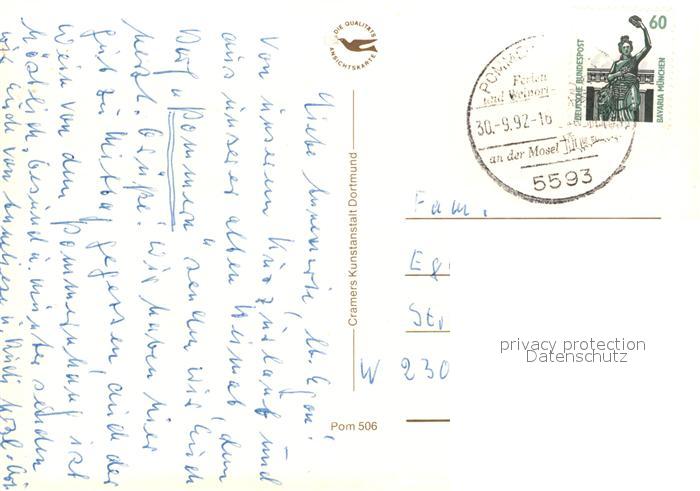 73213563 alte Postkarte Pommern Mosel Panorama Kreuzwegkapelle Moselcamping Pfarrhaus Kirche Dorfplatz postalisch gelaufen Erhaltung siehe scans [FriedD77] KatCode: 11110007135072
