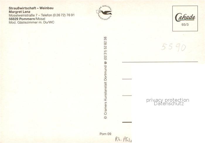 73646006 Pommern Mosel Strausswirtschaft Weinbau Lenz Restaurant postalisch nicht gelaufen Erhaltung siehe scans [FriedD77] KatCode: 11110007135072