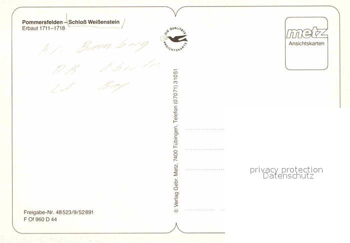 72872442 Pommersfelden Schloss Weissenstein 18. Jhdt. Fliegeraufnahme postalisch nicht gelaufen Erhaltung siehe scans [FriedD77] KatCode: 11110009471172