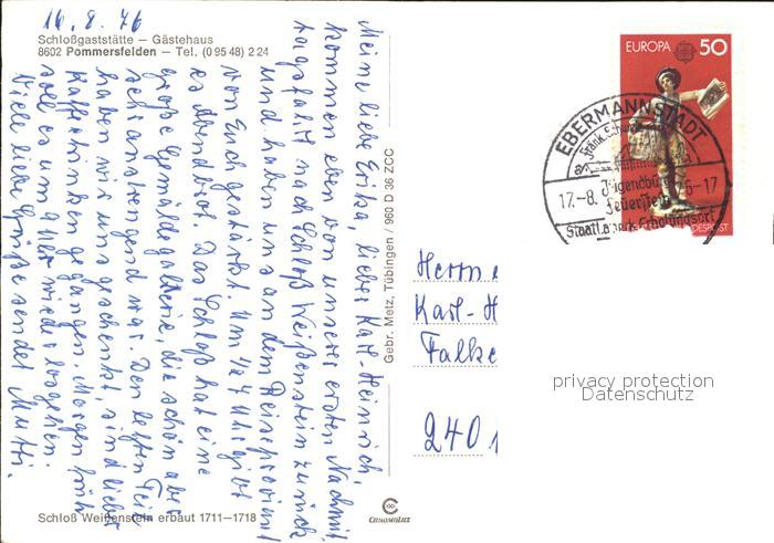 72179854 alte Postkarte Pommersfelden Schlossgaststaette Gaestehaus postalisch gelaufen Erhaltung siehe scans KatCode: 11110009471172