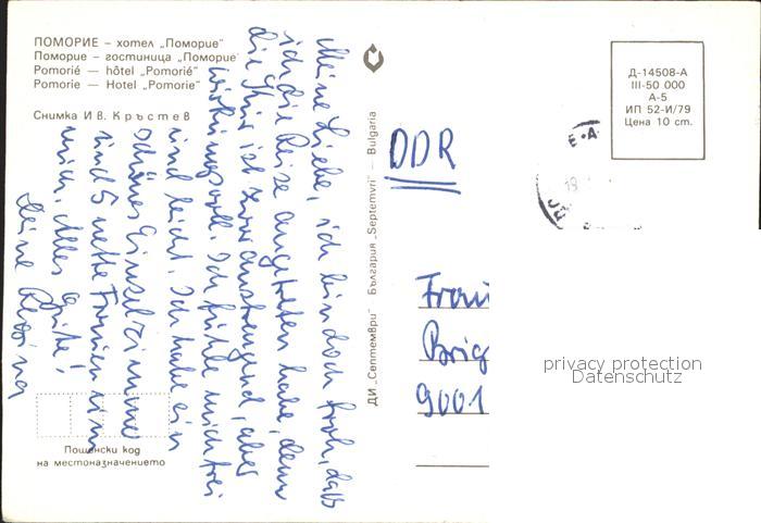 old postcard Pomorie Hotel Pomorie Boote postalisch gelaufen Erhaltung siehe scans