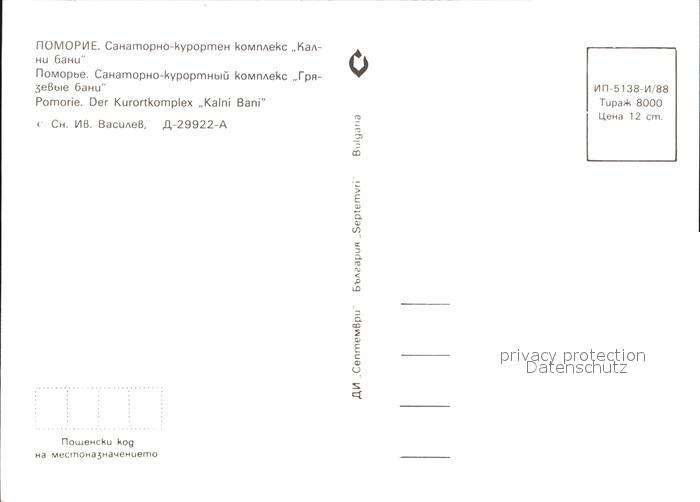 Pomorie Kurkomplex Kalni Bani postalisch nicht gelaufen Erhaltung siehe scans [LiesaD40]