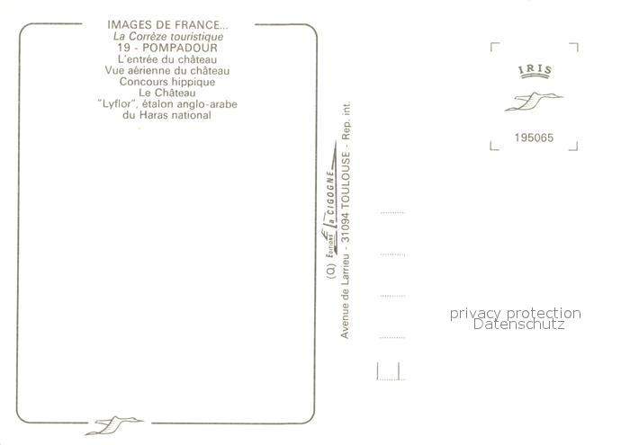13740406 Pompadour Entree du Chateau Vue aerienne du chateau Concours hippique Le Chateau Lyflor etalon anglo arabe du Haras national postalisch nicht gelaufen Erhaltung siehe scans [FriedD77] Frie Katcode 11170019119011